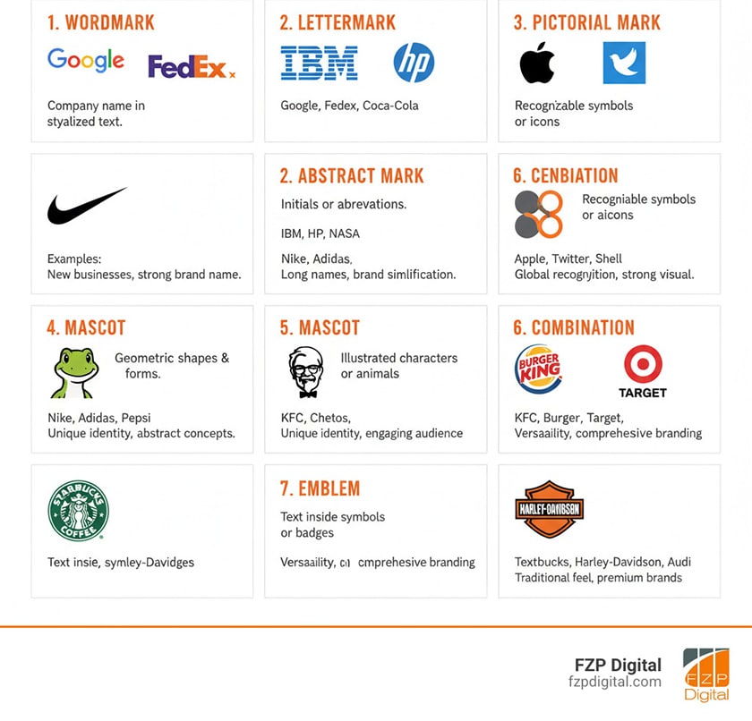 | Mascots | Illustrated characters that become your brand ambassadors | WWF Panda, KFC’s Colonel | Excellent for family-friendly brands or when you want personality |